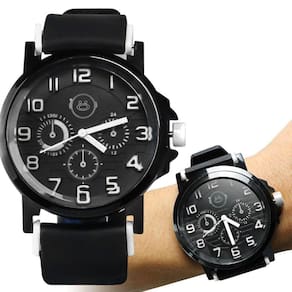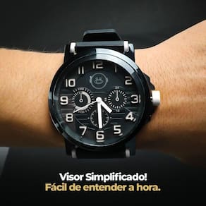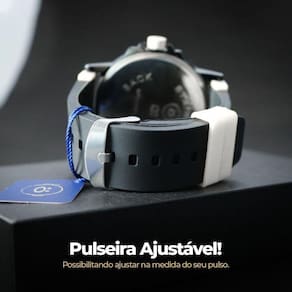 Predominantemente preto com detalhes em branco, este relógio é uma fusão de estilo e funcionalidade que se destaca em eventos casuais e ocasiões mais formais.