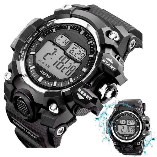 Relogio Masculino Silicone Prova Dagua Preto Digital Alarme