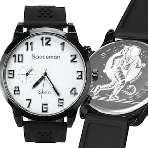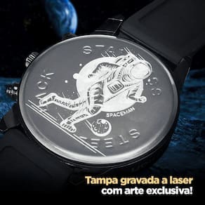 O Spaceman se destaca por sua gravação a laser, tanto na parte interna quanto externa do relógio, adicionando uma dimensão única ao seu design. Esta gravura meticulosa confere um toque exclusivo e realça a personalidade única deste relógio.