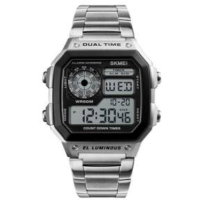 Relógio Masculino Skmei 1335 Digital Prova D'Água Prata NF Você quer usar um relógio super especial e atraente Este relógio é um relógio de pulso da moda masculina com função múltipla, que inclui alarme, data, semana, cronômetro, luz de fundo LED e exibição de 12/24 horas. Se você gosta de um relógio super elegante de qualidade, esse relógio é sua melhor escolha Marca: Skmei Modelo: 1335 Tipo de Item: Relógio de Pulso Digital Gênero: Masculino Estilo: Moda, Casual, Esporte Formato do Mostrador: Quadrado Material Janela Dial: Vidro de Resina Material da caixa: Abs Material Pulseira: Aço Inoxidável Tipo de Fecho: Fecho em Aço Inoxidável Luz El: Poderá utilizar a função de luz para iluminar o visor no escuro. Resistência à água: 5ATM (Não pressionar qualquer botão na água) FUNÇÕES Duplo Horário, Cronômetro, Alarme, Data, Semana, Luz El, Contagem Regressiva, Hora 12h/24h, Resistente à água 5ATM Tabela De Medidas Diâmetro da Caixa: 43mm Espessura da Caixa: 13mm Comprimento da Pulseira: Ajustável Largura da Pulseira: 18mm