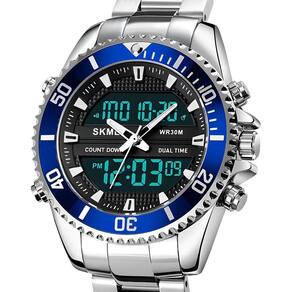 Característica: cronômetro, luz de fundo, resistente a choques, display LED, luminoso, data automática, cronógrafo, calendário completo, vários fusos horários, alarme, display semanal