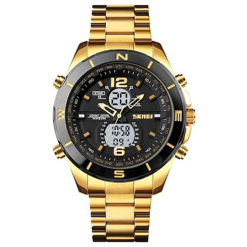 Relógio Masculino Skmei Anadigi 1670 Dourado