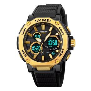 Relógio Masculino Skmei AnaDigi 2219GD Preto e Dourado Relógio Masculino Skmei AnaDigi 2219GD Preto e Dourado Marca: Skmei Categoria: AnaDigi Analógico: Sim 1 Horário Ponteiros Fluorescentes: Selecione Digital: Sim 2 Horário Calendário: Sim Despertador: Sim Mostra o Dia da Semana: Sim Mostra o Dia do Mês: Sim Cronômetro: Sim Contador Regressivo: Sim Luz: Sim Cor da Iluminação: Verde Resistente à Água: 5 ATM Pode ser Utilizado para nadar no raso, por pouco tempo submerso - Respingos: Sim - Chuva: Sim - Lavar Carro: Sim - Lavar Louça: Sim - Natação: Sim - Mergulho: Não Característica do Vidro: Acrílico Tipo de Fecho: Fivela Cor da Caixa: Dourado Material da Caixa: Plástico Formato da Caixa: Quadrado Comprimento da Caixa: 45,00 mm Largura da Caixa: 45,00 mm Espessura da Caixa: 16,50 mm Cor da Pulseira: Preto Material da Pulseira: Plástico Largura da Pulseira: 22,00 mm Comprimento Máximo da Pulseira: 270,00 mm Alimentação: Bateria Interna Peso Líquido: 0,070 Kg Modelo: 2219GD Cor Predominante: Preto Cor Diferencial: Dourado : 12 Meses Conteúdo da Embalagem: 01 Relógio 01 Embalagem 01 Termo de Ean: 7891368320458