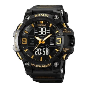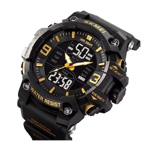 Relógio Masculino Skmei AnaDigi 2222 Preto e Dourado Relógio Masculino Skmei AnaDigi 2222 Preto e Dourado Marca: Skmei Categoria: AnaDigi ógico: Sim 1 Horário Ponteiros Fluorescentes: Selecione Digital: Sim 1 Horário Calendário: Sim Mostra o Dia da Semana: Sim Mostra o Dia do Mês: Sim Cronômetro: Sim Luz: Sim Cor da Iluminação: Verde Resistente à Água: 5 ATM Pode ser para nadar no raso, por pouco tempo submerso - Respingos: Sim - Chuva: Sim - Lavar Carro: Sim - Lavar Louça: Sim - Natação: Sim - Mergulho: Não Característica do Vidro: Acrílico Tipo de Fecho: Fivela Cor da Caixa: Preto Material da Caixa: Plástico Formato da Caixa: Redondo Diâmetro da Caixa: 52,00 mm Espessura da Caixa: 18,50 mm Cor da Pulseira: Preto Material da Pulseira: Plástico Largura da Pulseira: 21,00 mm Comprimento Máximo da Pulseira: 260,00 mm Alimentação: Bateria Interna Peso Líquido: 0,075 Kg Modelo: 2222 Cor Predominante: Preto Cor Diferencial: Dourado : 12 Meses Conteúdo da Embalagem: 01 Relógio 01 Embalagem 01 Termo de Marca: Não Informado