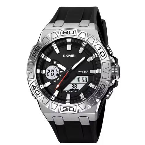 Relógio Masculino Skmei AnaDigi 2276 Preto e Prata Relógio Masculino Skmei AnaDigi 2276 Preto e Prata Marca: Skmei Categoria: AnaDigi ógico: Sim 1 Horário Ponteiros Fluorescentes: Selecione Digital: Sim 1 Horário Calendário: Sim Despertador: Sim Mostra o Dia da Semana: Sim Mostra o Dia do Mês: Sim Cronômetro: Sim Contador Regressivo: Sim Luz: Sim Cor da Iluminação: Verde Resistente à Água: 5 ATM Pode ser para nadar no raso, por pouco tempo submerso - Respingos: Sim - Chuva: Sim - Lavar Carro: Sim - Lavar Louça: Sim - Natação: Sim - Mergulho: Não Característica do Vidro: Acrílico Tipo de Fecho: Fivela Cor da Caixa: Prata Material da Caixa: Plástico Formato da Caixa: Redondo Diâmetro da Caixa: 45,00 mm Espessura da Caixa: 16,00 mm Cor da Pulseira: Preto Material da Pulseira: Borracha Largura da Pulseira: 19,50 mm Comprimento Máximo da Pulseira: 250,00 mm Alimentação: Bateria Interna Peso Líquido: 0,070 Kg Modelo: 2276 Cor Predominante: Preto Cor Diferencial: Prata : 12 Meses Conteúdo da Embalagem: 01 Relógio 01 Embalagem 01 Termo de Marca: Não Informado