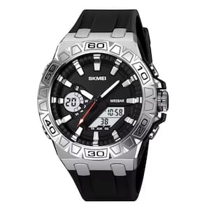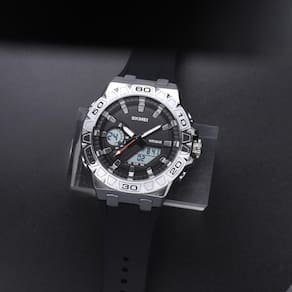 Relógio Masculino Skmei AnaDigi 2276 Preto e Prata Relógio Masculino Skmei AnaDigi 2276 Preto e Prata Marca: Skmei Categoria: AnaDigi ógico: Sim 1 Horário Ponteiros Fluorescentes: Selecione Digital: Sim 1 Horário Calendário: Sim Despertador: Sim Mostra o Dia da Semana: Sim Mostra o Dia do Mês: Sim Cronômetro: Sim Contador Regressivo: Sim Luz: Sim Cor da Iluminação: Verde Resistente à Água: 5 ATM Pode ser para nadar no raso, por pouco tempo submerso - Respingos: Sim - Chuva: Sim - Lavar Carro: Sim - Lavar Louça: Sim - Natação: Sim - Mergulho: Não Característica do Vidro: Acrílico Tipo de Fecho: Fivela Cor da Caixa: Prata Material da Caixa: Plástico Formato da Caixa: Redondo Diâmetro da Caixa: 45,00 mm Espessura da Caixa: 16,00 mm Cor da Pulseira: Preto Material da Pulseira: Borracha Largura da Pulseira: 19,50 mm Comprimento Máximo da Pulseira: 250,00 mm Alimentação: Bateria Interna Peso Líquido: 0,070 Kg Modelo: 2276 Cor Predominante: Preto Cor Diferencial: Prata : 12 Meses Conteúdo da Embalagem: 01 Relógio 01 Embalagem 01 Termo de Marca: Não Informado