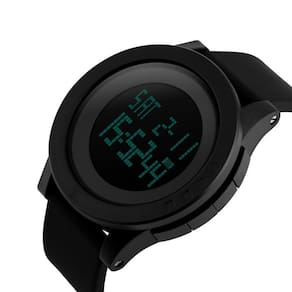 Relógio Masculino Skmei Digital 1142 - Preto Relógio Masculino Skmei Digital 1142 - Preto Marca: Skmei Categoria: Digital ógico: Não Digital: Sim 1 Horário Calendário: Sim Despertador: Sim Mostra o Dia da Semana: Sim Mostra o Dia do Mês: Sim Cronômetro: Sim Contador Regressivo: Sim Luz: Sim Cor da Iluminação: Verde Resistente à Água: 5 ATM Pode ser para nadar no raso, por pouco tempo submerso - Respingos: Sim - Chuva: Sim - Lavar Carro: Sim - Lavar Louça: Sim - Natação: Sim - Mergulho: Não Característica do Vidro: Acrílico Tipo de Fecho: Fivela Cor da Caixa: Preto Material da Caixa: Plástico Formato da Caixa: Redondo Diâmetro da Caixa: 51,20 mm Espessura da Caixa: 14,60 mm Cor da Pulseira: Preto Material da Pulseira: Silicone Largura da Pulseira: 25,00 mm Comprimento Máximo da Pulseira: 245,00 mm Alimentação: Bateria Interna Peso Líquido: 0,100 Kg Modelo: 1142 Cor Predominante: Preto : 12 Meses Conteúdo da Embalagem: 01 Relógio 01 Embalagem 01 Termo de Marca: Não Informado Ean: 7896575099753