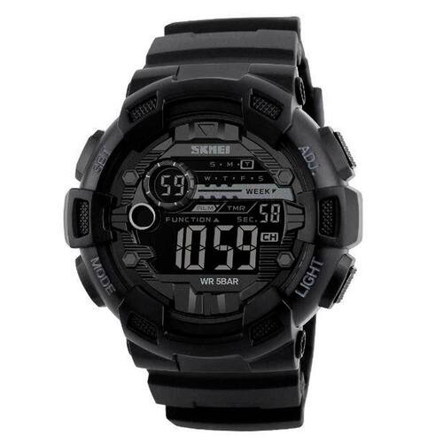 Relógio Masculino Skmei Digital 1243 - Preto Relógio Masculino Skmei Digital 1243 - Preto Marca: Skmei Categoria: Digital ógico: Não Digital: Sim 1 Horário Calendário: Sim Despertador: Sim Mostra o Dia da Semana: Sim Mostra o Dia do Mês: Sim Cronômetro: Sim Contador Regressivo: Sim Luz: Sim Cor da Iluminação: Verde Resistente à Água: 5 ATM Pode ser para nadar no raso, por pouco tempo submerso - Respingos: Sim - Chuva: Sim - Lavar Carro: Sim - Lavar Louça: Sim - Natação: Sim - Mergulho: Não Característica do Vidro: Acrílico Tipo de Fecho: Fivela Cor da Caixa: Preto Material da Caixa: Plástico Formato da Caixa: Redondo Diâmetro da Caixa: 50,70 mm Espessura da Caixa: 16,60 mm Cor da Pulseira: Preto Material da Pulseira: Plástico Largura da Pulseira: 19,60 mm Comprimento Máximo da Pulseira: 230,00 mm Alimentação: Bateria Interna Peso Líquido: 0,054 Kg Modelo: 1243 Cor Predominante: Preto : 12 Meses Conteúdo da Embalagem: 01 Relógio 01 Embalagem 01 Termo de Marca: Não Informado