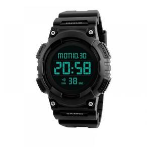 Relógio Masculino Skmei Digital 1248 - Preto Relógio Masculino Skmei Digital 1248 - Preto Marca: Skmei Categoria: Digital ógico: Não Digital: Sim 1 Horário Calendário: Sim Despertador: Sim Mostra o Dia da Semana: Sim Mostra o Dia do Mês: Sim Cronômetro: Sim Contador Regressivo: Não Luz: Sim Cor da Iluminação: Verde Resistente à Água: 5 ATM Pode ser para nadar no raso, por pouco tempo submerso - Respingos: Sim - Chuva: Sim - Lavar Carro: Sim - Lavar Louça: Sim - Natação: Sim - Mergulho: Não Característica do Vidro: Acrílico Tipo de Fecho: Fivela Cor da Caixa: Preto Material da Caixa: Plástico Formato da Caixa: Redondo Diâmetro da Caixa: 47,00 mm Espessura da Caixa: 13,40 mm Cor da Pulseira: Preto Material da Pulseira: Plástico Largura da Pulseira: 20,90 mm Comprimento Máximo da Pulseira: 240,00 mm Alimentação: Bateria Interna Peso Líquido: 0,060 Kg Modelo: 1248 Cor Predominante: Preto : 12 Meses Conteúdo da Embalagem: 01 Relógio 01 Embalagem 01 Termo de Marca: Não Informado