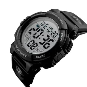 Relógio Masculino Skmei Digital 1258 Preto Relógio Masculino Skmei Digital 1258 Preto Marca: Skmei Categoria: Digital Analógico: Não Digital: Sim 1 Horário Calendário: Sim Despertador: Sim Mostra o Dia da Semana: Sim Mostra o Dia do Mês: Sim Cronômetro: Sim Luz: Sim Cor da Iluminação: Verde Resistente à Água: 5 ATM Pode ser Utilizado para nadar no raso, por pouco tempo submerso - Respingos: Sim - Chuva: Sim - Lavar Carro: Sim - Lavar Louça: Sim - Natação: Sim - Mergulho: Não Característica do Vidro: Acrílico Tipo de Fecho: Fivela Cor da Caixa: Preto Material da Caixa: Plástico Formato da Caixa: Redondo Diâmetro da Caixa: 49,00 mm Espessura da Caixa: 17,00 mm Cor da Pulseira: Preto Material da Pulseira: Plástico Largura da Pulseira: 21,00 mm Comprimento Máximo da Pulseira: 260,00 mm Alimentação: Bateria Interna Peso Líquido: 0,065 Kg Modelo: 1258 Cor Predominante: Preto : 12 Meses Conteúdo da Embalagem: 01 Relógio 01 Embalagem 01 Termo de Ean: 7891368320250