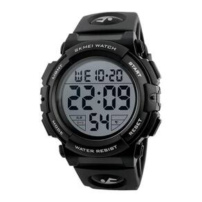 Relógio Masculino Skmei Digital 1258 Preto Relógio Masculino Skmei Digital 1258 Preto Marca: Skmei Categoria: Digital Analógico: Não Digital: Sim 1 Horário Calendário: Sim Despertador: Sim Mostra o Dia da Semana: Sim Mostra o Dia do Mês: Sim Cronômetro: Sim Luz: Sim Cor da Iluminação: Verde Resistente à Água: 5 ATM Pode ser Utilizado para nadar no raso, por pouco tempo submerso - Respingos: Sim - Chuva: Sim - Lavar Carro: Sim - Lavar Louça: Sim - Natação: Sim - Mergulho: Não Característica do Vidro: Acrílico Tipo de Fecho: Fivela Cor da Caixa: Preto Material da Caixa: Plástico Formato da Caixa: Redondo Diâmetro da Caixa: 49,00 mm Espessura da Caixa: 17,00 mm Cor da Pulseira: Preto Material da Pulseira: Plástico Largura da Pulseira: 21,00 mm Comprimento Máximo da Pulseira: 260,00 mm Alimentação: Bateria Interna Peso Líquido: 0,065 Kg Modelo: 1258 Cor Predominante: Preto : 12 Meses Conteúdo da Embalagem: 01 Relógio 01 Embalagem 01 Termo de