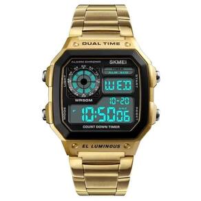 Relógio Masculino Skmei Digital 1335 Dourado Relógio Masculino Skmei Digital 1335 Dourado Marca: Skmei Categoria: Digital ógico: Não Digital: Sim 1 Horário Calendário: Sim Despertador: Sim Mostra o Dia da Semana: Sim Mostra o Dia do Mês: Sim Cronômetro: Sim Contador Regressivo: Sim Luz: Sim Cor da Iluminação: Verde Resistente à Água: 5 ATM Pode ser para nadar no raso, por pouco tempo submerso - Respingos: Sim - Chuva: Sim - Lavar Carro: Sim - Lavar Louça: Sim - Natação: Sim - Mergulho: Não Característica do Vidro: Acrílico Tipo de Fecho: Dobrável com Botão Cor da Caixa: Dourado Material da Caixa: Plástico Formato da Caixa: Quadrado Comprimento da Caixa: 45,00 mm Largura da Caixa: 40,00 mm Espessura da Caixa: 13,40 mm Cor da Pulseira: Dourado Material da Pulseira: Aço Largura da Pulseira: 18,00 mm Comprimento Máximo da Pulseira: 230,00 mm Alimentação: Bateria Interna Peso Líquido: 0,090 Kg Modelo: 1335 Cor Predominante: Dourado : 12 Meses Conteúdo da Embalagem: 01 Relógio 01 Embalagem 01 Termo de Marca: Não Informado