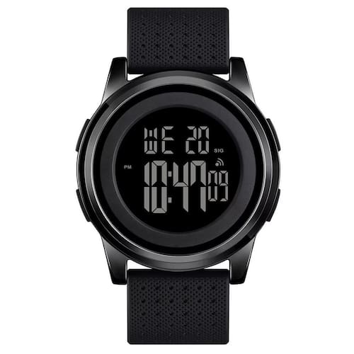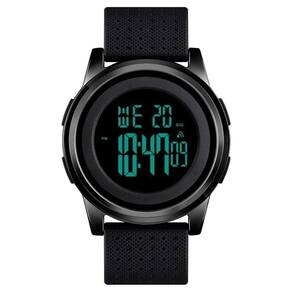 Relógio Masculino Skmei Digital 1502 Preto Relógio Masculino Skmei Digital 1502 Preto Marca: Skmei Categoria: Digital Analógico: Não Digital: Sim 1 Horário Calendário: Sim Despertador: Sim Mostra o Dia da Semana: Sim Mostra o Dia do Mês: Sim Cronômetro: Sim Contador Regressivo: Não Luz: Sim Cor da Iluminação: Verde Resistente à Água: 3 ATM Resiste a imersões breves - Respingos: Sim - Chuva: Sim - Lavar Carro: Sim - Lavar Louça: Sim - Natação: Não - Mergulho: Não Característica do Vidro: Acrílico Tipo de Fecho: Fivela Cor da Caixa: Preto Material da Caixa: Metal Banho IP Formato da Caixa: Redondo Diâmetro da Caixa: 44,00 mm Espessura da Caixa: 9,00 mm Cor da Pulseira: Preto Material da Pulseira: Plástico Largura da Pulseira: 21,00 mm Comprimento Máximo da Pulseira: 240,00 mm Alimentação: Bateria Interna Peso Líquido: 0,056 Kg Modelo: 1502 Cor Predominante: Preto : 12 Meses Conteúdo da Embalagem: 01 Relógio 01 Embalagem 01 Termo de Marca: Não Informado Ean: 7898563350532