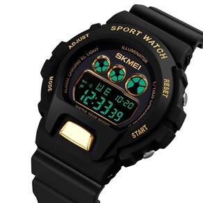 Marca: Skmei Categoria: Digital Analógico: Não Digital: Sim (1 Horário) Calendário: Sim Despertador: Sim Mostra o Dia da Semana: Sim Mostra o Dia do Mês: Sim Cronômetro: Sim Contador Regressivo: Não Luz: Sim Cor da Iluminação: Verde Resistente à Água: 5 ATM - Respingos: Sim - Chuva: Sim - Lavar Carro: Sim - Lavar Louça: Sim - Natação: Sim - Mergulho: Não Característica do Vidro: Acrílico Tipo de Fecho: Fivela Cor da Caixa: Preto Material da Caixa: Plástico Formato da Caixa: Redondo Diâmetro da Caixa: 45,00 (mm) Espessura da Caixa: 16,00 (mm) Cor da Pulseira: Preto Material da Pulseira: Plástico Largura da Pulseira: 19,00 (mm) Comprimento Máximo da Pulseira: 215,00 (mm) Alimentação: Bateria Interna Peso Líquido: 0,043 Kg Modelo: 1775 Cor Predominante: Preto Garantia: 12 Meses