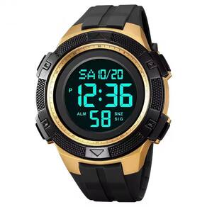 Relógio Masculino Skmei Digital 2078 Preto e Dourado Relógio Masculino Skmei Digital 2078 Preto e Dourado Marca: Skmei Categoria: Digital ógico: Não Digital: Sim 1 Horário Calendário: Sim Despertador: Sim Mostra o Dia da Semana: Sim Mostra o Dia do Mês: Sim Cronômetro: Sim Contador Regressivo: Sim Luz: Sim Cor da Iluminação: Resistente à Água: 5 ATM Pode ser para nadar no raso, por pouco tempo submerso - Respingos: Sim - Chuva: Sim - Lavar Carro: Sim - Lavar Louça: Sim - Natação: Sim - Mergulho: Não Característica do Vidro: Acrílico Tipo de Fecho: Fivela Cor da Caixa: Preto Material da Caixa: Plástico Formato da Caixa: Redondo Diâmetro da Caixa: 48,00 mm Espessura da Caixa: 16,50 mm Cor da Pulseira: Preto Material da Pulseira: Plástico Largura da Pulseira: 20,00 mm Comprimento Máximo da Pulseira: 240,00 mm Alimentação: Bateria Interna Peso Líquido: 055 Kg Modelo: 2078 Cor Predominante: Preto Cor Diferencial: Dourado : 12 Meses Conteúdo da Embalagem: 01 Relógio 01 Embalagem 01 Termo de Marca: Não Informado Ean: 7898563350884