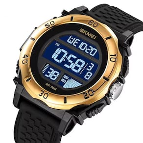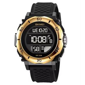 Relógio Masculino Skmei Digital 2099 Preto e Dourado Relógio Masculino Skmei Digital 2099 Preto e Dourado Marca: Skmei Categoria: Digital ógico: Não Digital: Sim 1 Horário Calendário: Sim Despertador: Sim Mostra o Dia da Semana: Sim Mostra o Dia do Mês: Sim Cronômetro: Sim Contador Regressivo: Não Luz: Sim Cor da Iluminação: Resistente à Água: 5 ATM Pode ser para nadar no raso, por pouco tempo submerso - Respingos: Sim - Chuva: Sim - Lavar Carro: Sim - Lavar Louça: Sim - Natação: Sim - Mergulho: Não Característica do Vidro: Acrílico Tipo de Fecho: Fivela Cor da Caixa: Dourado Material da Caixa: Plástico Formato da Caixa: Redondo Diâmetro da Caixa: 48,50 mm Espessura da Caixa: 15,00 mm Cor da Pulseira: Preto Material da Pulseira: Silicone Largura da Pulseira: 25,00 mm Comprimento Máximo da Pulseira: 260,00 mm Alimentação: Bateria Interna Peso Líquido: 0,080 Kg Modelo: 2099 Cor Predominante: Preto Cor Diferencial: Dourado : 12 Meses Conteúdo da Embalagem: 01 Relógio 01 Embalagem 01 Termo de Marca: Não Informado Ean: 7898563350624