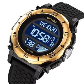 Relógio Masculino Skmei Digital 2099 Preto e Dourado Relógio Masculino Skmei Digital 2099 Preto e Dourado Marca: Skmei Categoria: Digital ógico: Não Digital: Sim 1 Horário Calendário: Sim Despertador: Sim Mostra o Dia da Semana: Sim Mostra o Dia do Mês: Sim Cronômetro: Sim Contador Regressivo: Não Luz: Sim Cor da Iluminação: Resistente à Água: 5 ATM Pode ser para nadar no raso, por pouco tempo submerso - Respingos: Sim - Chuva: Sim - Lavar Carro: Sim - Lavar Louça: Sim - Natação: Sim - Mergulho: Não Característica do Vidro: Acrílico Tipo de Fecho: Fivela Cor da Caixa: Dourado Material da Caixa: Plástico Formato da Caixa: Redondo Diâmetro da Caixa: 48,50 mm Espessura da Caixa: 15,00 mm Cor da Pulseira: Preto Material da Pulseira: Silicone Largura da Pulseira: 25,00 mm Comprimento Máximo da Pulseira: 260,00 mm Alimentação: Bateria Interna Peso Líquido: 0,080 Kg Modelo: 2099 Cor Predominante: Preto Cor Diferencial: Dourado : 12 Meses Conteúdo da Embalagem: 01 Relógio 01 Embalagem 01 Termo de Marca: Não Informado