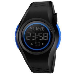 Relógios multifuncionais masculinos LED Digital Sports Outdoor Military Black PU Strap impermeáveis (azuis)