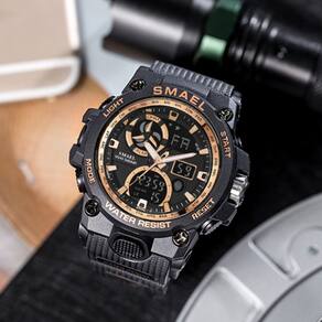 Marca: Smael Categoria: AnaDigi Analógico: Sim (1 Horário) Ponteiros Fluorescentes: Não Digital: Sim (1 Horário) Calendário: Sim Despertador: Sim Mostra o Dia da Semana: Sim Mostra o Dia do Mês: Sim Cronômetro: Sim Contador Regressivo: Não Luz: Sim Cor da Iluminação: Verde Resistente à Água: 5 ATM - Respingos: Sim - Chuva: Sim - Lavar Carro: Sim - Lavar Louça: Sim - Natação: Sim - Mergulho: Não Característica do Vidro: Acrílico Tipo de Fecho: Fivela Cor da Caixa: Preto Material da Caixa: Plástico Formato da Caixa: Redondo Diâmetro da Caixa: 48,00 (mm) Espessura da Caixa: 17,00 (mm) Cor da Pulseira: Preto Material da Pulseira: Borracha Largura da Pulseira: 20,00 (mm) Comprimento Máximo da Pulseira: 240,00 (mm) Alimentação: Bateria Interna Peso Líquido: 0,070 Kg Modelo: 8011 Cor Predominante: Preto Cor Diferencial: Dourado Garantia: 12 Meses
