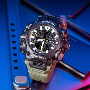 Relógio Masculino Smael AnaDigi 8053 Verde e Preto Relógio Masculino Smael AnaDigi 8053 Verde e Preto Marca: Smael Categoria: AnaDigi Analógico: Sim 1 Horário Ponteiros Fluorescentes: Sim Digital: Sim 1 Horário Calendário: Sim Despertador: Sim Mostra o Dia da Semana: Sim Mostra o Dia do Mês: Sim Cronômetro: Sim Luz: Sim Cor da Iluminação: Verde Resistente à Água: 5 ATM Pode ser Utilizado para nadar no raso, por pouco tempo submerso - Respingos: Sim - Chuva: Sim - Lavar Carro: Sim - Lavar Louça: Sim - Natação: Sim - Mergulho: Não Característica do Vidro: Acrílico Tipo de Fecho: Fivela Cor da Caixa: Preto Material da Caixa: Plástico Formato da Caixa: Redondo Diâmetro da Caixa: 50,00 mm Espessura da Caixa: 17,00 mm Cor da Pulseira: Verde Material da Pulseira: Plástico Largura da Pulseira: 22,00 mm Comprimento Máximo da Pulseira: 260,00 mm Alimentação: Bateria Interna Peso Líquido: 0,073 Kg Modelo: 8053 Cor Predominante: Verde Cor Diferencial: Preto : 12 Meses Conteúdo da Embalagem: 01 Relógio 01 Embalagem 01 Termo de