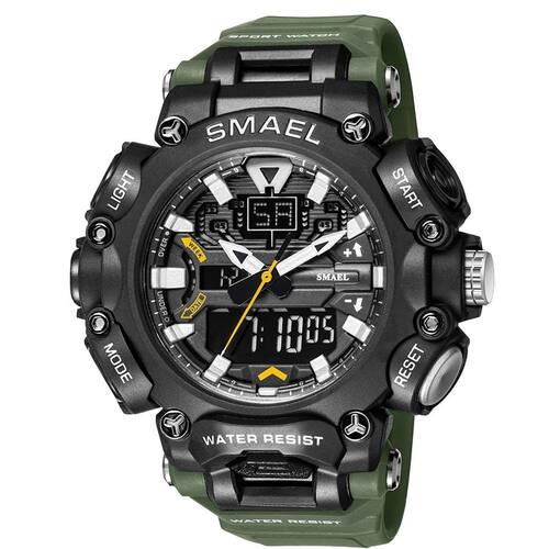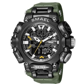 Relógio Masculino Smael AnaDigi 8053 Verde e Preto Relógio Masculino Smael AnaDigi 8053 Verde e Preto Marca: Smael Categoria: AnaDigi Analógico: Sim 1 Horário Ponteiros Fluorescentes: Sim Digital: Sim 1 Horário Calendário: Sim Despertador: Sim Mostra o Dia da Semana: Sim Mostra o Dia do Mês: Sim Cronômetro: Sim Luz: Sim Cor da Iluminação: Verde Resistente à Água: 5 ATM Pode ser Utilizado para nadar no raso, por pouco tempo submerso - Respingos: Sim - Chuva: Sim - Lavar Carro: Sim - Lavar Louça: Sim - Natação: Sim - Mergulho: Não Característica do Vidro: Acrílico Tipo de Fecho: Fivela Cor da Caixa: Preto Material da Caixa: Plástico Formato da Caixa: Redondo Diâmetro da Caixa: 50,00 mm Espessura da Caixa: 17,00 mm Cor da Pulseira: Verde Material da Pulseira: Plástico Largura da Pulseira: 22,00 mm Comprimento Máximo da Pulseira: 260,00 mm Alimentação: Bateria Interna Peso Líquido: 0,073 Kg Modelo: 8053 Cor Predominante: Verde Cor Diferencial: Preto : 12 Meses Conteúdo da Embalagem: 01 Relógio 01 Embalagem 01 Termo de Ean: 7891368314839