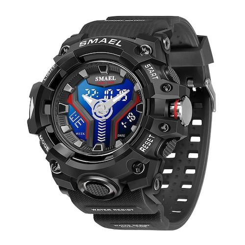 Marca: Smael Categoria: AnaDigi Analógico: Sim (1 Horário) Ponteiros Fluorescentes: Sim Digital: Sim (1 Horário) Calendário: Sim Despertador: Sim Mostra o Dia da Semana: Sim Mostra o Dia do Mês: Sim Cronômetro: Sim Contador Regressivo: Não Luz: Sim Cor da Iluminação: Verde Resistente à Água: 5 ATM - Respingos: Sim - Chuva: Sim - Lavar Carro: Sim - Lavar Louça: Sim - Natação: Sim - Mergulho: Não Característica do Vidro: Acrílico Tipo de Fecho: Fivela Cor da Caixa: Preto Material da Caixa: Plástico Formato da Caixa: Redondo Diâmetro da Caixa: 48,00 (mm) Espessura da Caixa: 18,00 (mm) Cor da Pulseira: Preto Material da Pulseira: Borracha Largura da Pulseira: 22,00 (mm) Comprimento Máximo da Pulseira: 250,00 (mm) Alimentação: Bateria Interna Peso Líquido: 0,074 Kg Modelo: 8048 Cor Predominante: Preto Cor Diferencial: Dourado Garantia: 12 Meses