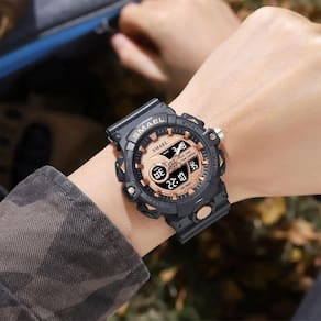 Relógio Masculino Smael AnaDigi 8081 Preto e Rose Relógio Masculino Smael AnaDigi 8081 Preto e Rose Marca: Smael Categoria: AnaDigi ógico: Sim 1 Horário Ponteiros Fluorescentes: Sim Digital: Sim 1 Horário Calendário: Sim Despertador: Sim Mostra o Dia da Semana: Sim Mostra o Dia do Mês: Sim Cronômetro: Sim Contador Regressivo: Não Luz: Sim Cor da Iluminação: Verde Resistente à Água: 5 ATM Pode ser para nadar no raso, por pouco tempo submerso - Respingos: Sim - Chuva: Sim - Lavar Carro: Sim - Lavar Louça: Sim - Natação: Sim - Mergulho: Não Característica do Vidro: Acrílico Tipo de Fecho: Fivela Cor da Caixa: Preto Material da Caixa: Plástico Formato da Caixa: Redondo Diâmetro da Caixa: 52,00 mm Espessura da Caixa: 18,00 mm Cor da Pulseira: Preto Material da Pulseira: Borracha Largura da Pulseira: 21,00 mm Comprimento Máximo da Pulseira: 250,00 mm Alimentação: Bateria Interna Peso Líquido: 0,060 Kg Modelo: 8081 Cor Predominante: Preto : 12 Meses Conteúdo da Embalagem: 01 Relógio 01 Embalagem 01 Termo de Marca: Não Informado