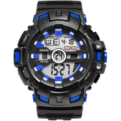 Marca: Smael Categoria: Digital Analógico: Não Digital: Sim (1 Horário) Calendário: Sim Despertador: Sim Mostra o Dia da Semana: Sim Mostra o Dia do Mês: Sim Cronômetro: Sim Contador Regressivo: Não Luz: Sim Cor da Iluminação: Verde Resistente à Água: 5 ATM - Respingos: Sim - Chuva: Sim - Lavar Carro: Sim - Lavar Louça: Sim - Natação: Sim - Mergulho: Não Característica do Vidro: Acrílico Tipo de Fecho: Fivela Cor da Caixa: Preto Material da Caixa: Plástico Formato da Caixa: Redondo Diâmetro da Caixa: 53,00 (mm) Espessura da Caixa: 17,00 (mm) Cor da Pulseira: Preto Material da Pulseira: Borracha Largura da Pulseira: 22,00 (mm) Comprimento Máximo da Pulseira: 240,00 (mm) Alimentação: Bateria Interna Peso Líquido: 0,050 Kg Modelo: 1532B Cor Predominante: Preto Cor Diferencial: Azul Garantia: 12 Meses