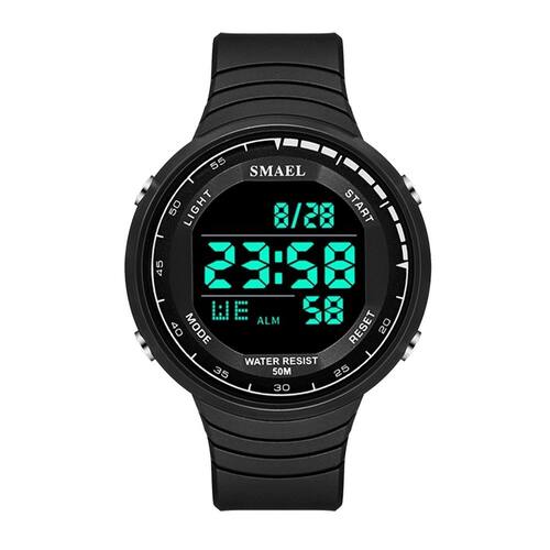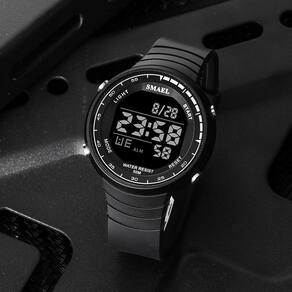 Marca: Smael Categoria: Digital Analógico: Não Digital: Sim (1 Horário) Calendário: Sim Despertador: Sim Mostra o Dia da Semana: Sim Mostra o Dia do Mês: Sim Cronômetro: Sim Contador Regressivo: Não Luz: Sim Cor da Iluminação: Verde Resistente à Água: 5 ATM - Respingos: Sim - Chuva: Sim - Lavar Carro: Sim - Lavar Louça: Sim - Natação: Sim - Mergulho: Não Característica do Vidro: Acrílico Tipo de Fecho: Fivela Cor da Caixa: Preto Material da Caixa: Plástico Formato da Caixa: Redondo Diâmetro da Caixa: 48,00 (mm) Espessura da Caixa: 14,00 (mm) Cor da Pulseira: Preto Material da Pulseira: Borracha Largura da Pulseira: 21,50 (mm) Comprimento Máximo da Pulseira: 240,00 (mm) Alimentação: Bateria Interna Peso Líquido: 0,052 Kg Modelo: 1925 Cor Predominante: Preto Garantia: 12 Meses