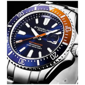Prepare se para ir mais fundo com o Depthmaster 3950A da Sthrling. Tamanho da Caixa 42mm Ponteiros e índices luminescentes em estilo bastão FÁCEIS DE LER, reunidos em uma moldura de borda de moeda e finalizados com uma coroa rosqueada assinada. Movimento Miyota ULTRA PRECISO. Pulseira de aço inoxidável de fileira tripla TOTALMENTE AJUSTÁVEL com fecho de segurança com botão de pressão. RESISTENTE À ÁGUA até 10 ATM 100 metros, 330 pés, adequado para natação e mergulho