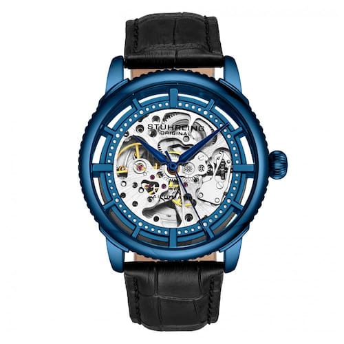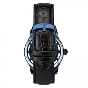 Tamanho da Caixa 41mm. Este relógio automático é feito para dar corda automaticamente o que significa que seu movimento natural dá ao Winchester seu poder de movimento. O mostrador esqueletizado adiciona interesse e personalidade ao relógio. Completo com um fundo de exibição para uma estrutura clássica que os entusiastas de relógios podem apreciar. A pulseira de couro em relevo de crocodilo garante conforto e durabilidade
