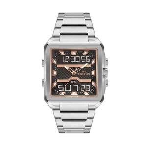 Relógio technos masculino anadig prata bj3758aa/1p Relógio technos masculino anadig prata bj3758aa/1pCom diferenciada caixa quadrada, o lançamento da linha digitech transforma o design clássico moderno, apresentando mostrador com aplicação de textura e detalhes metálicos em rosé.Seu módulo negativo com luz noturna e mostrador com lumi refletem toda a sua modernidade.Produto 100 em aço inoxidável, com calendário e resistência à água de 50m. Gênero masculino Tipo ana digiCor da caixa prataMaterial da pulseira açoFormato quadradoCor do mostrador pretoTipo de fecho trava por pressãoGarantia 12 mesesCor da pulseira prataLargura da caixa 43 mmResistência à água 5 atm