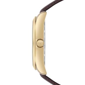 Este relógio foi confeccionado com material de primeiríssima qualidade, garantindo sua resistência e durabilidade. Sua caixa é feita em aço, na cor dourada, o que confere um toque de elegância ao acessório. A pulseira, por sua vez, é em couro na cor marrom, proporcionando conforto e estilo ao usuário.