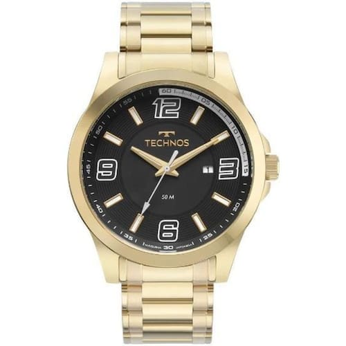 Especificações Técnicas Marca: Technos Gênero: Masculino Modelo: 2115NBA/1D Mecanismo: Quartzo Tipo: Analógico Cor da caixa: Dourado Cor do mostrador: Preto Cor da pulseira: Dourado Tipo de fecho: Trava lateral Formato: Redondo Material do vidro: Cristal mineral Material da pulseira: Aço inoxidável Tamanho: 45 mm Resistência à água: 5 atm - 50 m Calendário: Sim Garantia: 1 ano