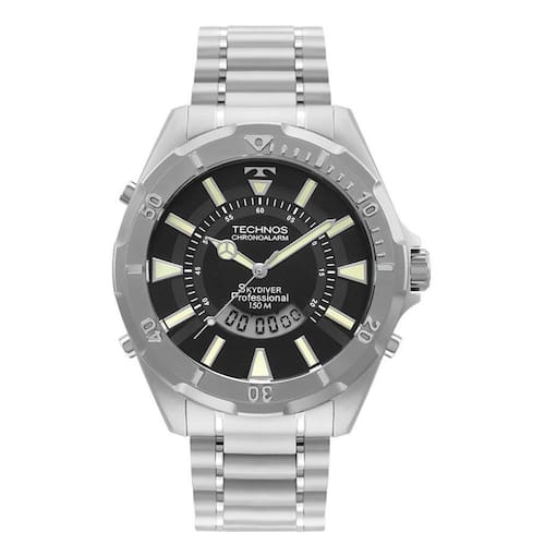 O Relógio é um dos acessórios mais presentes em todas as fases da nossa vida, mesmo com inúmeros dispositivos modernos que mostram as horas, o clássico relógio para pulso não perdeu seu charme e é uma ótima opção para complementar o visual. Produzido com materiais resistentes e de qualidade, a peça reúne sofisticação e estilo em um único item. A escolha perfeita para homens elegantes, que gostam de ter um acessório que complemente o look em qualquer ocasião. Características: Relógio Technos WT205FY/1P Especificações Gênero: Masculino Tipo de Maquinário: Analógico e digital Cor do Mostrador: Preto Cor da Caixa: Prata Tamanho da Caixa: 48mm Material da Caixa: Aço Inoxidável Cor da Pulseira: Prata Material da Pulseira: Aço Inoxidável Resistência à água: 15ATM Fabricado por Technos da Amazônia Indústria e Comércio com de 1 Ano