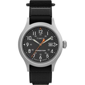 Relógio masculino Timex Expedition Scout de 40 mm - Caixa preta de aço IP com mostrador preto Fastwrap - Envoltório rápido preto de 8 polegadas - Caixa redonda de 40 mm - Mostrador preto - Lente de vidro mineral - Resistente à água até 50 metros