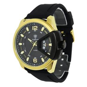 Relógio Masculino Tuguir Analógico 2397 Dourado e Preto ou AmareloMarca: Tuguir Categoria: Analógico Analógico: Sim (1 Horário) Ponteiros Fluorescentes: Não Digital: Não Luz: NãoResistente à Água: 5 ATM (Pode ser utilizado para nadar no raso, por pouco tempo submerso) - Respingos: Sim - Chuva: Sim - Lavar Carro: Sim - Lavar Louça: Sim - Natação: Sim - Mergulho: Não Característica do Vidro: Cristal Mineral Tipo de Fecho: Fivela Cor da Caixa: Dourado Material da Caixa: Metal Banho IP Formato da Caixa: Redondo Diâmetro da Caixa: 48,00 (mm) Espessura da Caixa: 12,00 (mm) Cor da Pulseira: Amarelo ou Preto Material da Pulseira: Silicone Largura da Pulseira: 20,00 (mm) Comprimento Máximo da Pulseira: 260,00 (mm) Alimentação: Bateria Interna Peso Líquido: 0,100 Kg Modelo: 2397 Cor Predominante: Dourado Garantia: 12 MesesConteúdo da Embalagem:01 Relógio 01 Embalagem 01 Termo de Garantia