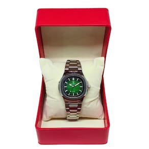 Relógio Masculino Tuguir Analógico 9218 Prata e Verde Relógio Masculino Tuguir Analógico 9218 Prata e Verde Marca: Tuguir Categoria: Analógico Analógico: Sim 1 Horário Ponteiros Fluorescentes: Não Digital: Não Luz: Selecione Resistente à Água: 5 ATM Pode ser Utilizado para nadar no raso, por pouco tempo submerso - Respingos: Sim - Chuva: Sim - Lavar Carro: Sim - Lavar Louça: Sim - Natação: Sim - Mergulho: Não Característica do Vidro: Cristal Mineral Tipo de Fecho: Dobrável com Botão Cor da Caixa: Prata Material da Caixa: Metal Banho IP Formato da Caixa: Quadrado Comprimento da Caixa: 39,00 mm Largura da Caixa: 39,00 mm Espessura da Caixa: 10,50 mm Cor da Pulseira: Prata Material da Pulseira: Aço Largura da Pulseira: 18,00 mm Comprimento Máximo da Pulseira: 280,00 mm Alimentação: Bateria Interna Peso Líquido: 0,120 Kg Modelo: 9218 Cor Predominante: Prata Cor Diferencial: Verde : 12 Meses Conteúdo da Embalagem: 01 Relógio 01 Embalagem 01 Termo de