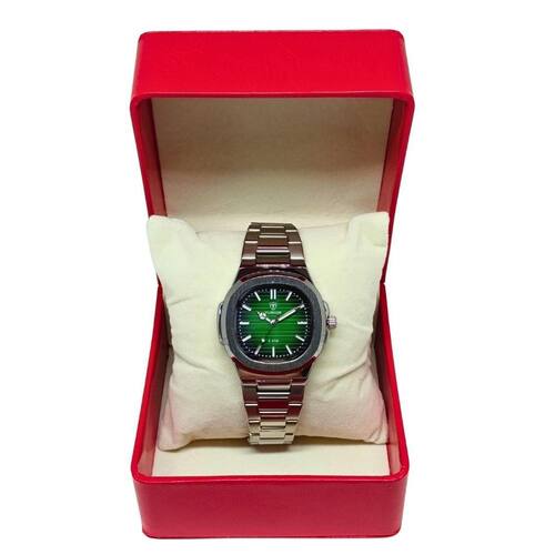 Relógio Masculino Tuguir Analógico 9218 Prata e Verde Relógio Masculino Tuguir Analógico 9218 Prata e Verde Marca: Tuguir Categoria: Analógico Analógico: Sim 1 Horário Ponteiros Fluorescentes: Não Digital: Não Luz: Selecione Resistente à Água: 5 ATM Pode ser Utilizado para nadar no raso, por pouco tempo submerso - Respingos: Sim - Chuva: Sim - Lavar Carro: Sim - Lavar Louça: Sim - Natação: Sim - Mergulho: Não Característica do Vidro: Cristal Mineral Tipo de Fecho: Dobrável com Botão Cor da Caixa: Prata Material da Caixa: Metal Banho IP Formato da Caixa: Quadrado Comprimento da Caixa: 39,00 mm Largura da Caixa: 39,00 mm Espessura da Caixa: 10,50 mm Cor da Pulseira: Prata Material da Pulseira: Aço Largura da Pulseira: 18,00 mm Comprimento Máximo da Pulseira: 280,00 mm Alimentação: Bateria Interna Peso Líquido: 0,120 Kg Modelo: 9218 Cor Predominante: Prata Cor Diferencial: Verde : 12 Meses Conteúdo da Embalagem: 01 Relógio 01 Embalagem 01 Termo de
