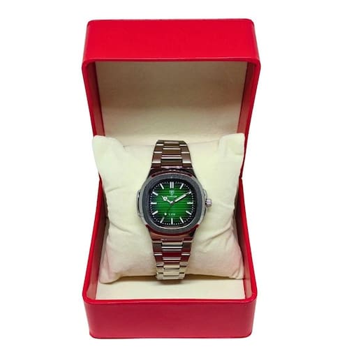 Relógio Masculino Tuguir Analógico 9218 Prata e Verde Relógio Masculino Tuguir Analógico 9218 Prata e Verde Marca: Tuguir Categoria: Analógico Analógico: Sim 1 Horário Ponteiros Fluorescentes: Não Digital: Não Luz: Selecione Resistente à Água: 5 ATM Pode ser Utilizado para nadar no raso, por pouco tempo submerso - Respingos: Sim - Chuva: Sim - Lavar Carro: Sim - Lavar Louça: Sim - Natação: Sim - Mergulho: Não Característica do Vidro: Cristal Mineral Tipo de Fecho: Dobrável com Botão Cor da Caixa: Prata Material da Caixa: Metal Banho IP Formato da Caixa: Quadrado Comprimento da Caixa: 39,00 mm Largura da Caixa: 39,00 mm Espessura da Caixa: 10,50 mm Cor da Pulseira: Prata Material da Pulseira: Aço Largura da Pulseira: 18,00 mm Comprimento Máximo da Pulseira: 280,00 mm Alimentação: Bateria Interna Peso Líquido: 0,120 Kg Modelo: 9218 Cor Predominante: Prata Cor Diferencial: Verde : 12 Meses Conteúdo da Embalagem: 01 Relógio 01 Embalagem 01 Termo de Ean: 7891368317991