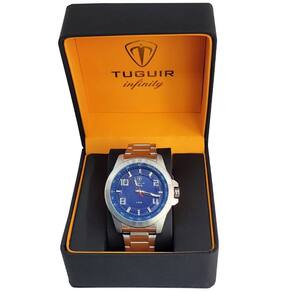 Relógio Masculino Tuguir ógico Infinity TGI37108 Prata e Azul Relógio Masculino Tuguir ógico Infinity TGI37108 Prata e Azul Marca: Tuguir Categoria: ógico ógico: Sim 1 Horário Ponteiros Fluorescentes: Sim Digital: Não Calendário: Não Despertador: Não Mostra o Dia da Semana: Não Mostra o Dia do Mês: Não Cronômetro: Não Contador Regressivo: Não Luz: Não Resistente à Água: 5 ATM Pode ser para nadar no raso, por pouco tempo submerso - Respingos: Sim - Chuva: Sim - Lavar Carro: Sim - Lavar Louça: Sim - Natação: Sim - Mergulho: Não Característica do Vidro: Cristal Mineral Tipo de Fecho: Dobrável com Botão Cor da Caixa: Prata Material da Caixa: Aço Formato da Caixa: Redondo Diâmetro da Caixa: 44,50 mm Espessura da Caixa: 10,00 mm Cor da Pulseira: Prata Material da Pulseira: Aço Largura da Pulseira: 20,00 mm Comprimento Máximo da Pulseira: 230,00 mm Alimentação: Bateria Interna Peso Líquido: 0,061 Kg Modelo: 9167F Cor Predominante: Prata Cor Diferencial: Azul : 12 Meses Conteúdo da Embalagem: 01 Relógio 01 Embalagem 01 Termo de Marca: Não Informado