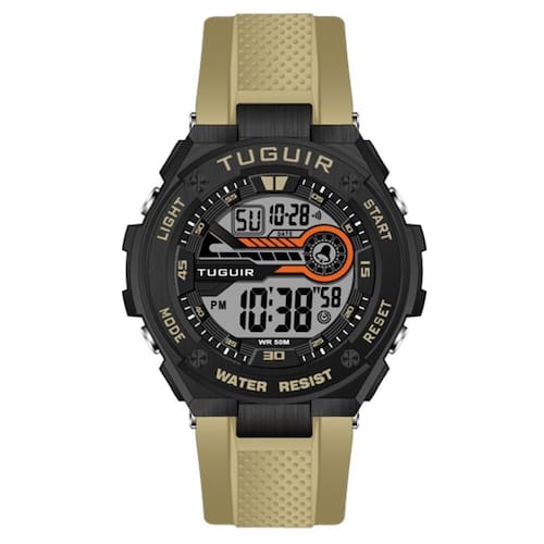 Relógio masculino tuguir digital tg293 preto e bege marca: tuguir categoria: digital analógico: não digital: sim 1 horário calendário: sim despertador: sim mostra o dia da semana: sim mostra o dia do mês: sim cronômetro: sim contador regressivo: não luz: sim cor da iluminação: verde resistente à água: 5 atm pode ser utilizado para nadar no raso, por pouco tempo submerso - respingos: sim - chuva: sim - lavar carro: sim - lavar louça: sim - natação: sim - mergulho: não característica do vidro: acrílico tipo de fecho: fivela cor da caixa: preto material da caixa: plástico formato da caixa: redondo diâmetro da caixa: 50,00 mm espessura da caixa: 19,50 mm cor da pulseira: bege material da pulseira: plástico largura da pulseira: 22,00 mm comprimento máximo da pulseira: 240,00 mm alimentação: bateria interna peso líquido: 0,066 kg modelo: tg293 cor predominante: preto cor diferencial: bege garantia: 12 meses