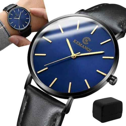 Relógio masculino ultrafino black quartz fundo azul + caixa Excelente relógio, ideal para quem busca um modelo versátil. Combinará com qualquer ocasião. Perfeito para o dia a dia agregando qualidade e conforto. Lindo para presentear quem você gosta