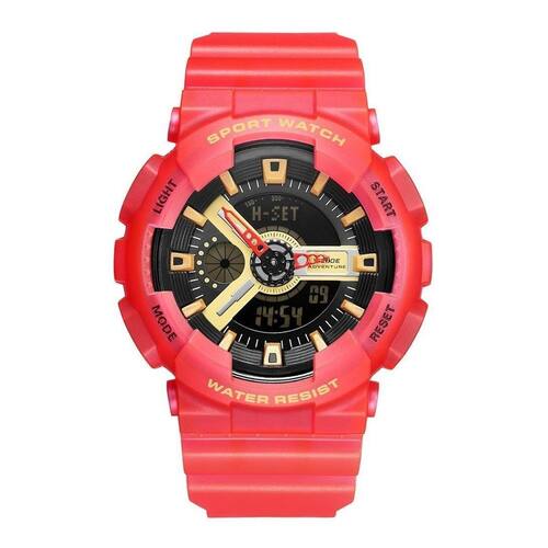 Relógio Masculino Weide AnaDigi WA3J8004 - Vermelho e Preto Características do Produto: Marca: Weide Categoria: AnaDigi Analógico: Sim 1 Horário Ponteiros Fluorescentes: Não Digital: Sim 1 Horário Calendário: Sim Despertador: Sim Mostra o Dia da Semana: Sim Mostra o Dia do Mês: Sim Cronômetro: Sim Contador Regressivo: Não Luz: Sim Cor da Iluminação: Verde Resistente à Água: 5 ATM Pode ser Utilizado para nadar no raso, por pouco tempo submerso - Respingos: Sim - Chuva: Sim - Lavar Carro: Sim - Lavar Louça: Sim - Natação: Sim - Mergulho: Não Característica do Vidro: Acrílico Tipo de Fecho: Fivela Cor da Caixa: Vermelha Translúcida Material da Caixa: Plástico Formato da Caixa: Redondo Diâmetro da Caixa: 51,10 mm Espessura da Caixa: 17,40 mm Cor da Pulseira: Vermelha Translúcida Material da Pulseira: Plástico Largura da Pulseira: 22,30 mm Comprimento Máximo da Pulseira: 240,00 mm Alimentação: Bateria Interna Peso Líquido: 0,060 Kg Modelo: WA3J8004 Cor Predominante: Vermelho Cor Diferencial: Preto : 12 Meses