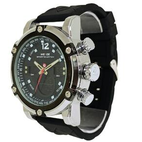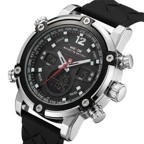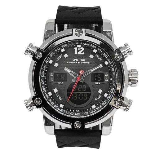 Relógio Masculino Weide AnaDigi WH-5205 Prata e PretoMarca: Weide Categoria: AnaDigi Analógico: Sim (1 Horário) Ponteiros Fluorescentes: Selecione Digital: Sim (1 Horário) Despertador: Sim Mostra o Dia da Semana: Sim Mostra o Dia do Mês: Sim Cronômetro: Sim Luz: Sim Cor da Iluminação: VerdeResistente à Água: 3 ATM (Resiste a imersões breves) - Respingos: Sim - Chuva: Sim - Lavar Carro: Sim - Lavar Louça: Sim - Natação: Não - Mergulho: Não Característica do Vidro: Cristal Mineral Tipo de Fecho: Fivela Cor da Caixa: Prata Material da Caixa: Metal Banho IP Formato da Caixa: Redondo Diâmetro da Caixa: 49,50 (mm) Espessura da Caixa: 18,00 (mm) Cor da Pulseira: Preto Material da Pulseira: Silicone Largura da Pulseira: 23,50 (mm) Comprimento Máximo da Pulseira: 250,00 (mm) Alimentação: Bateria Interna Peso Líquido: 0,130 Kg Modelo: WH-5205 Cor Predominante: Prata Cor Diferencial: Preto Garantia: 12 MesesConteúdo da Embalagem: 01 Relógio 01 Embalagem 01 Termo de Garantia Ean: 7891368321363