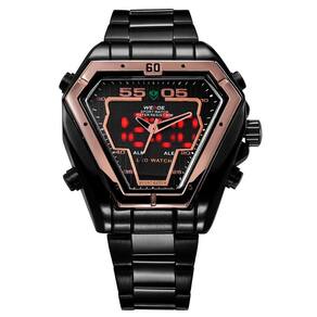 Relógio Masculino Weide AnaDigi WH1102B - Preto e Dourado Relógio Masculino Weide AnaDigi WH1102B - Preto e Dourado Marca: Weide Categoria: AnaDigi Analógico: Sim 1 Horário Ponteiros Fluorescentes: Não Digital: Sim 1 Horário Calendário: Sim Despertador: Sim Mostra o Dia da Semana: Não Mostra o Dia do Mês: Sim Cronômetro: Não Contador Regressivo: Não Luz: Sim Cor da Iluminação: Vermelho Resistente à Água: 3 ATM Resiste a imersões breves - Respingos: Sim - Chuva: Sim - Lavar Carro: Sim - Lavar Louça: Sim - Natação: Não - Mergulho: Não Característica do Vidro: Cristal Mineral Tipo de Fecho: Dobrável com Botão e Trava Cor da Caixa: Preto Material da Caixa: Metal Banho IP Formato da Caixa: Quadrado Comprimento da Caixa: 49,70 mm Largura da Caixa: 52,20 mm Espessura da Caixa: 15,50 mm Cor da Pulseira: Preto Material da Pulseira: Metal Largura da Pulseira: 20,80 mm Comprimento Máximo da Pulseira: 230,00 mm Alimentação: Bateria Interna Peso Líquido: 0,169 Kg Modelo: WH1102B Cor Predominante: Preto Cor Diferencial: Dourado Garantia: 12 Meses Conteúdo da Embalagem: 01 Relógio 01 Embalagem 01 Termo de Garantia