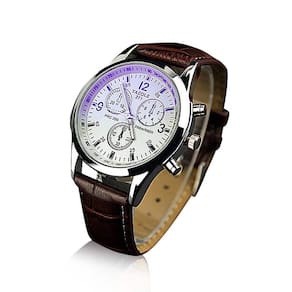 Relógio Masculino Yazole 271 Branco Pulseira Marrom Quartzo