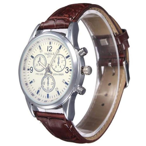 Relógio masculino yazole Excelente relógio, ideal para quem busca um modelo versátil. Combinará com qualquer ocasião. Perfeito para o dia a dia agregando qualidade e conforto.Lindo para presentear quem você gosta!!!! Modelo: 271Movimento japãoEstilo: social / casualDescrição do mostrador:Material: metal de alta qualidadeExposição: analógicoFormato: redondoEspessura: 8 mmDiâmetro: 40 mm aprox.Peso: 46 g Descrição da pulseira:Fechamento: fivela em aço inoxidávelComprimento: 24 cmLargura: 20 mm Relógio não é à prova d água.Ponteiros pequenos do interior do relógio são decorativos, fixos.Embalado em saco plástico do fabricanteProduto não acompanha estojo/caixa.
