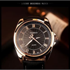 Relógio Masculino Yazole 336 Pulseira Em Couro Preto