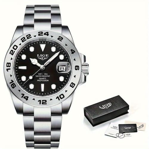 [Estilo negócio]: Com seu design sofisticado] em aço inoxidável e o toque de classe do mostrador redondo, o LIGE eleva qualquer look de business casual a outro nível.